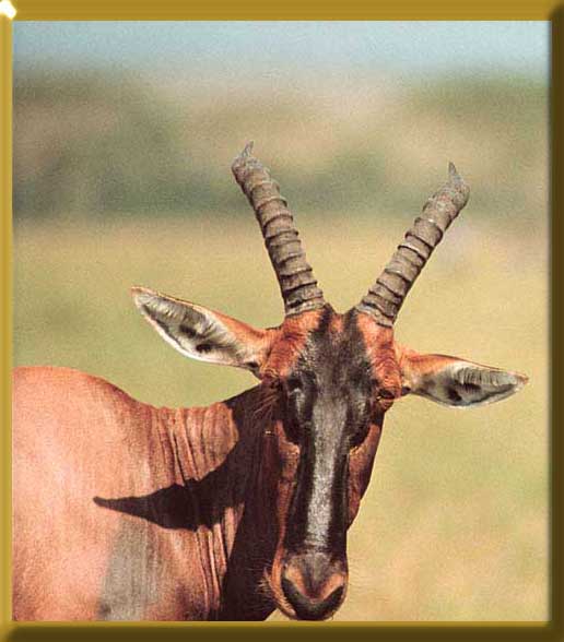 Topi, Damaliscus lunatus .... And just what is Damaliscus? it is a genus in the subfamily Alcelaphinae in th ![]() Topi (Damaliscus lunatus) is smaller and darker than Hartebeest . It has S-formed horns. The male is darker than the female. It prefers grasfields without trees or bushes. © John H. Fields, http://www.meandmephoto.com/Africa/Pages/Animals.html There are to day mainly 5 subspecies of the Topi; the Tsessebe split into two subspecies. This species remains widespread across sub-Saharan Africa, but has undergone substantial declines during the last 100 years and is threatened by hunting for meat and competition with cattle. Total population size has been estimated at about 300,000. About 25% of these occurred in areas with reasonably good protection and management. However, WCS surveys in southern Sudan indicate that this estimate should be increased by about 100,000. Most remaining populations are known or believed to be declining. BBC Natural History Unit http://www.arkive.org This species formerly occurred widely on floodplains and other grasslands in sub-Saharan Africa. It was one of the most numerous large antelope species in Africa, but has been eliminated from much of its former range. Various populations have become very rare and it has disappeared from Mali, Mauritania, Mozambique, Senegal, The Gambia, and Burundi. Population trends are increasing for the Tsessebe (especially on private land) and Bangweulu Tseseebe, but decreasing for most of the other subspecies The following also belong to the Genus Damaliscus, and are described on this page.