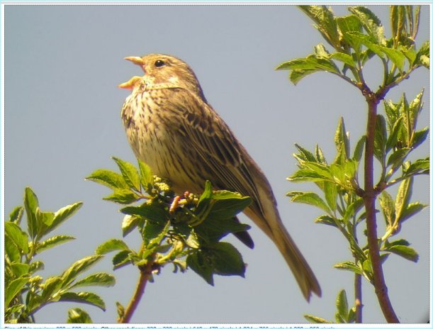 Bunting, Emberiza calandra, singing male. Salles-la-Souce,