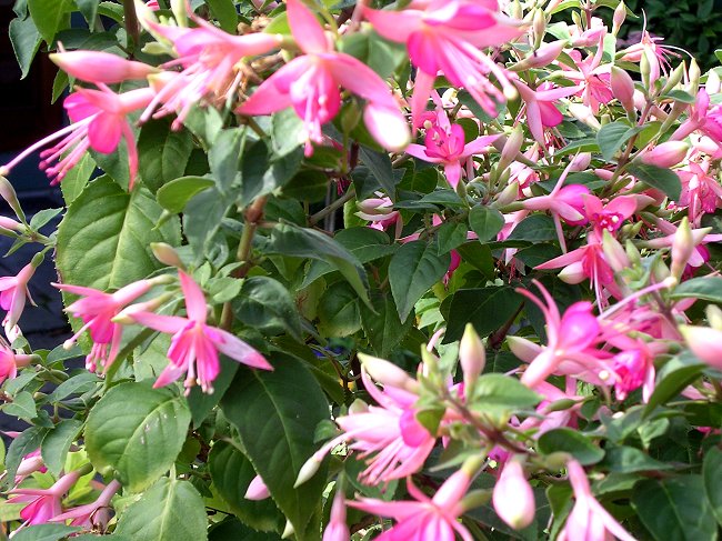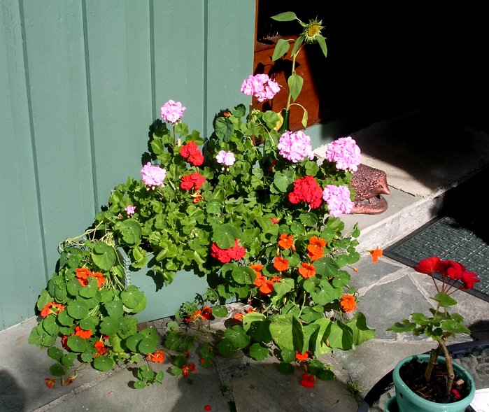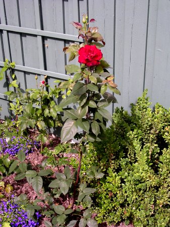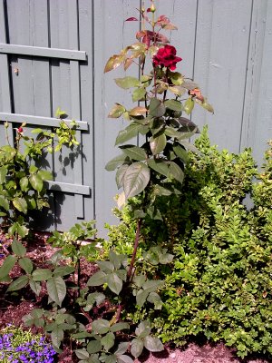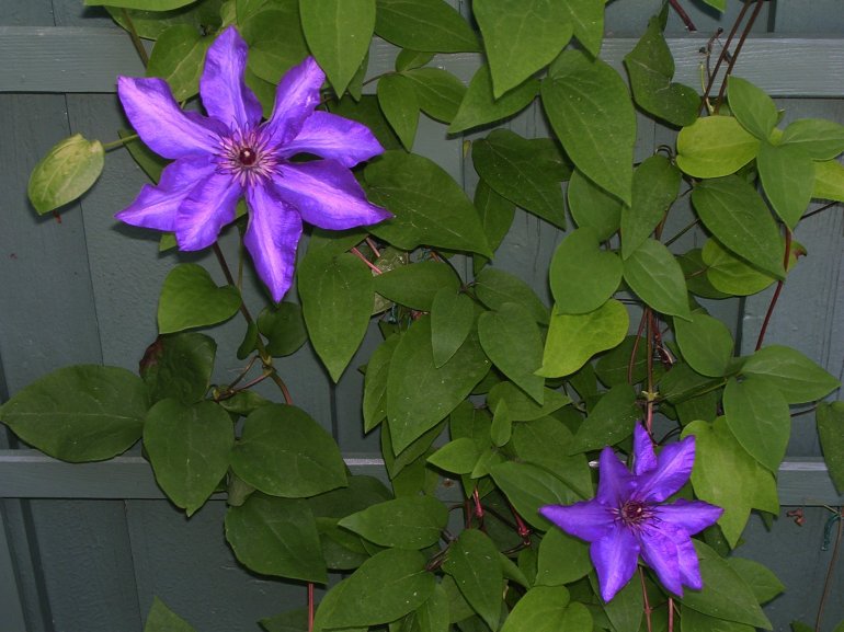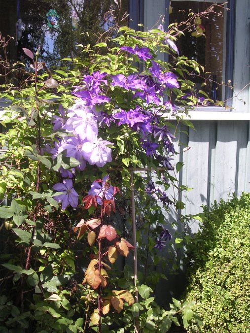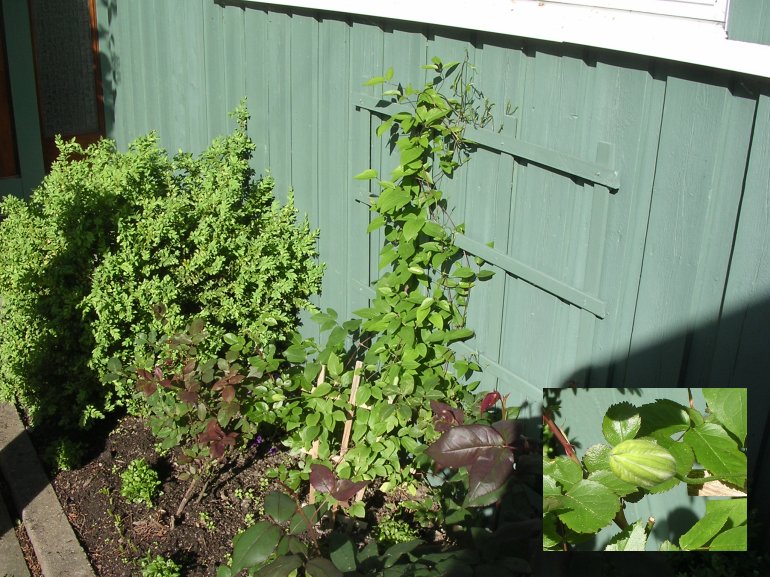 Senhøstes ble det endelig fart i denne solsikken. Litt sent, men allikevel... ![]() 03.06.2007 I år kommer klematisen fint, også med en knopp. Desverre døde denne. 13.06.2007. Den kan allikevel! ![]() 28.08.2008. Det er trivelig på trappen til hovedinngangen vår. ![]() Ut mot rhododendon-busken står denne nå, og er blitt 'kjempestor'. (Se den tidligere på plassen i hagen i fjor, klikk her) ![]() Vi har to forskjellige blåfarger nå (juni 2015) og begge blomstrer like livlig. . |
