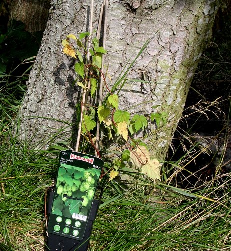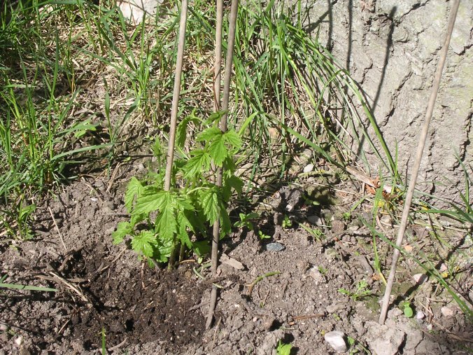 I år har vi plantet en klatrerose ved grantreet ytterst til
