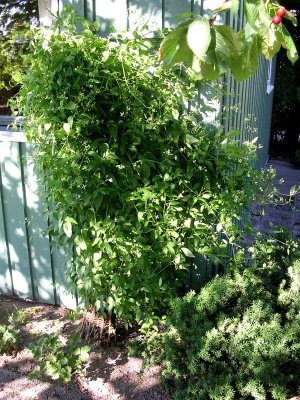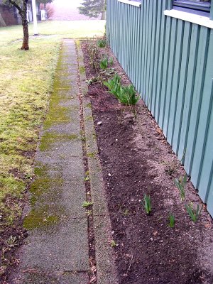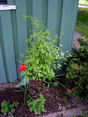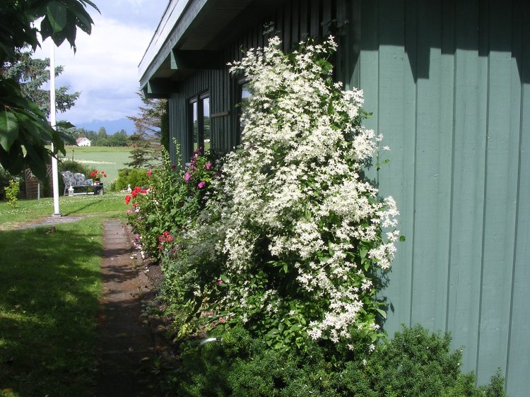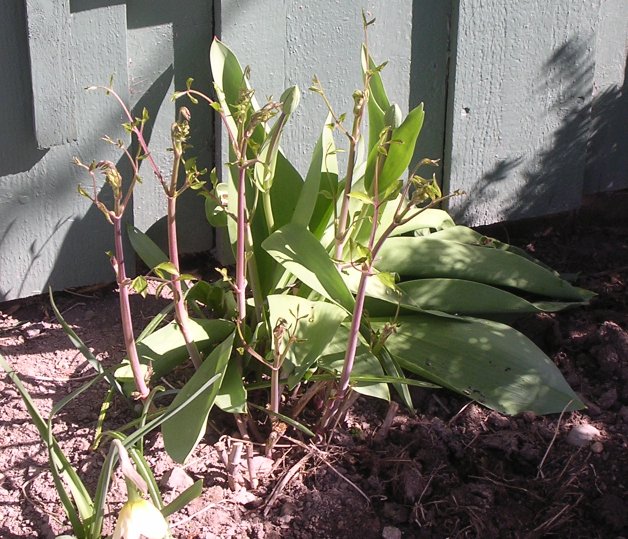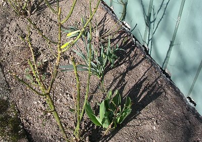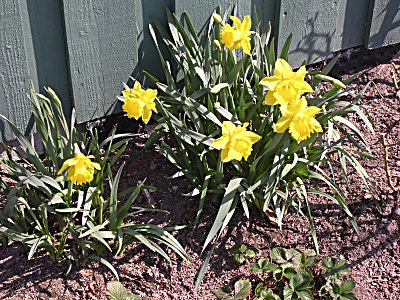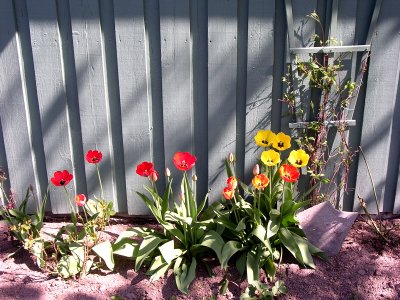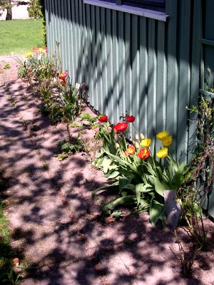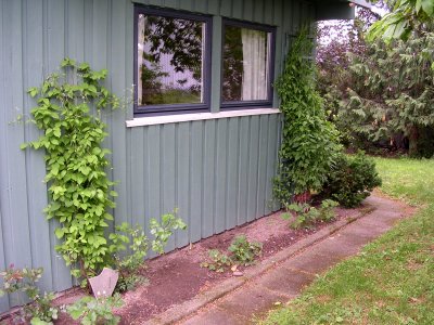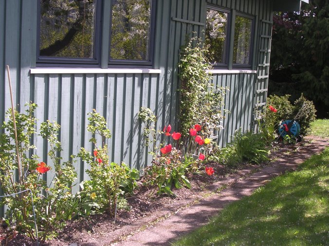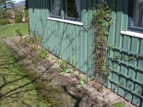 27.04.06 - utenfor gjesteværelsene Året etter, 23.04.2007. ![]() 2.5.2006 - de første påskeliljene - 05.05.2006 1.april året etter, i 2007. 27.04.06 en clematis? ![]() Utrolig hvor mye rart som dukker opp i våre blomsterbed. 8.05.06 ![]() 10.05.06 Nå er det like før tulipanene kommer for fullt. - 11.05.06. I dag står 25 tulipaner utsprunget her. ![]() 11.05.06 Det er forandringer fra det første bildet i april. - 12.05.06 Enda en nykomling på vei opp. ![]() 22.05.06 Bladene likner på vår klematis, men ikke helt.... 02.06.2006 ...men vokse kan den ![]() 23.04.2007 - vi tok godt vare på den, og her er den klar for en ny sesong igjen. ![]() 14.06.2006 Det er visst ikke grenser for hvor høy den kan bli... 14.06.2006. I mens går vi i spenning og venter på hva dette blir. ![]() 19.06.2006. Vi flytter to roser lengere til venstre, og etterlater et stort tomrom.