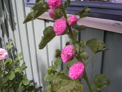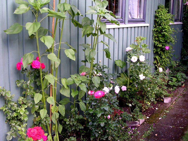11.08.2006 Stokkrosen i full blomst nå. ![]() 11.08.2006. Solsikkene fortsetter å imponere. ![]() 17.08.2006. Vi har også en gul stokkrose! ![]() 13.06.2007 - Jo da, vi har roser i år også..... Hortensiaen på hjørnet vokser i år også.... 28.aug.2008. Vi planter noen stauder hist og her i år, Dette er en Coreopsis grandiflora, som bærer navnet 'Heliot'. Heliot har et nydelig mønster i blomsten. ![]() Samtidig satte vi enda en Prunella grandiflora, 'Rosea' også i dette beddet. ![]() 10.mai 2009 Det er klart for en ny sesong. Se speilbildet i vinduene av morelltreet som blomster! 09.06.2009 Joda, vi har jordbær enda, men grossister blir vi ikke.... |