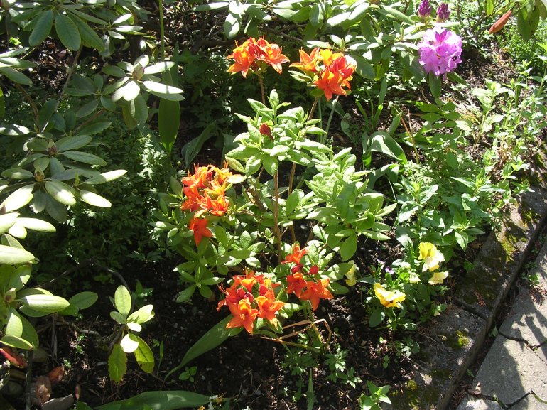 ![]() 06.06.2006. Inne under rhododendron. - 17.06.2006. Vi flytter asaleaen fram i lyset. .12.07.2006. I det andre hjørnet trives asaleaen nå bedre. ![]() 17.mai 2007. Bladene er ikke så store enda, men nå kommer det blomster på asaleaen! 20.05.2007. Det gikk langsomt på grunn av regn og mye kaldt vær sist i mai. ![]() 29.05.2007. Asalea! 03.06.2007 |
