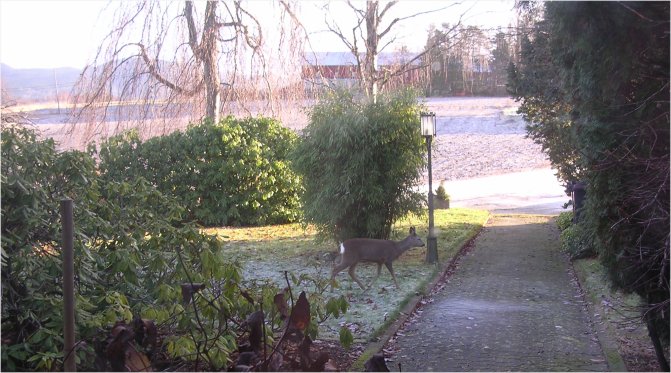 All pictures from the first week of March, 2008 One day, out in the field, they are surely not easy to see. 22.08.2008. This summer they have been more active than previously. We have seen them almost daily, a few times also with calves. Many years later they are fewer, but still we can have them coming up to our garden: Early spring, 2015 . © www.vulkaner.no Back to main-menu