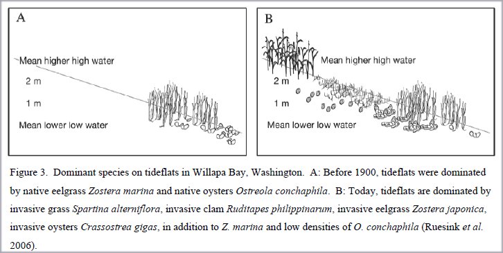 I mange områder har stillehavsøstersen overgrodd tidligere