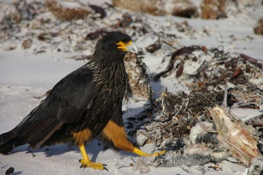 The Striated Caracara is primarily a scavenger, feeding on carrion,
