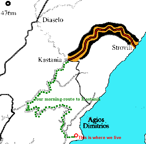 Som du ser på dette kartet, som viser hele veien fra Kastania