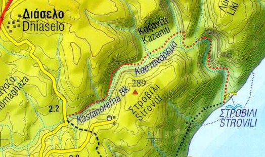 Strovili via Kastania, og tilbake til Agios Dimitrios. Stopp.