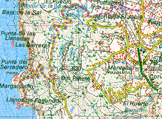 from our house in Puntagorda, all the way down to the 'beach' (3).