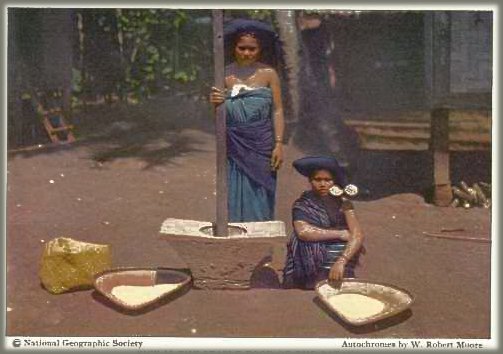 Batak hustruer er stolte og uavhengige Kvinnene tar deld i arbeidet både hjemme og på jordene. De lager sine klær av indigo-farget hjemmespunnede stoffer, og når det gjelder smykker er de snodde sølvøreringene et godt bidrag til hodeplaggene. (c) National Geographic, February 1930 Språklig og arkeologisk forsking indikerer at Austronesisk talende folk først nådde Sumatra fra Taiwan og Philippinene via Borneo og/eller Java for omkring 2.500 år siden, og Batak stammer fra disse nybyggerne. [2] Uttrykket Batak ble først brukt av malayiske nybyggere for å beskrive enhver ikke muslim i denne delen av Sumatra. Det er seks adskilte Batak-stammer i dette området: Angkola/Sipirok, Karo, Mandailing, Pakpak/Dairi, Simalungun og Toba. Selv om disse seks gruppe har mange ting felles, er det forskjeller på i deres språk, historie og tradisjoner. Ris er hovedmatkilden til Batak-folket. Med lange trestokker skiller kvinnene ut de hvite kjernene og samler dem i kurver. (c) National Geographic, February 1930 Av Batak-stammene har Karo motstått forandring fra utenforstående påvirkning, og bevart sine tradisjoner mer enn noen av de andre stammene. Det har imidlertid ikke vært lett - forandringer opp gjennom historien har brakt dem i kontakt med indisk handels-kultur, hollandske kolonister, kristne misjonærer, japanske militære okkupanter, og sist av den indonesiske regjeringens politikk. Toba-Batak hus fra Indonesia This picture is licensed under the Creative Commons license Batak-folken er kjent for sin rikdom i arkitektur. Noen av dem er deres store kommunale langhus. Ingen av dem bygges mer, og de som fortsatt finnes har stått der i opp til tre hundre år. De fleste av dem som fremdeles står, bokstavelig talt, riktignok, på sine siste ben, er fremdeles bebodd i dag. Så mange som tolv familier kan bo i et av disse husene, selvom 8 er normen. De ble bygd av naturlige materialer - hovedsakelig tre og bambus - og det ble ikke brukt nagler, spiker eller skruer, de holdes ganske enkelt sammen av fiber fra Ijuk-palmen, som også er hovedkilden til deres strådekte tak. Batak-folket er organisert i klaner - store familiegrupper kalt