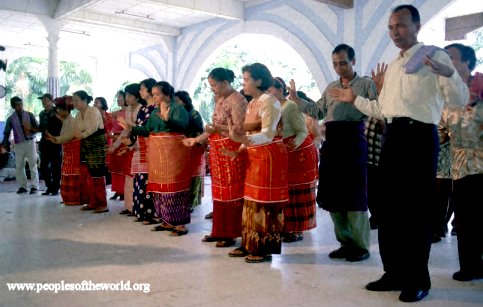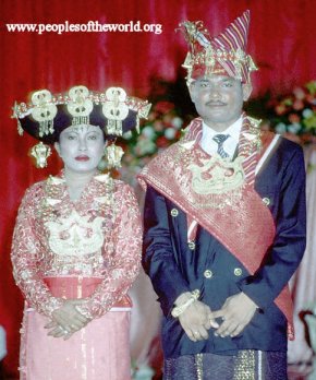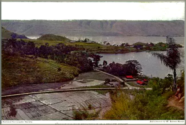 margas. Det er 5 hovedklaner: Ginting, Karo-Karo, Selv om det kanskje ikke er helt sant nå i våre dager, er det den yngre generasjon som holder de musikalske tradisjoner ved like. Unge gutter samles ofte for å synge tradisjonelle Karo-sanger, som de synger på sitt eget karonesiske språk. (Alle Karo er idag i stand til å snakke Bahasa Indonesisk, landets nasjonale språk.) Deres sanger forteller fra deres folks histore og legender, så vel som om åndene fra fjellene og skogene. I tidligere tider mener man at sangene også inneholdt mystiske krefter.. © 1999 - 2010, Ray Waddington. All rights reserved The Peoples of the World Foundation Under en bryllupsmottakelse tar medlemmer av begge familiene del i tradisjonelle karonesiske danser. Dette er en meget rolig form for dans, der de fleste av bevegelsene gjøres med hendene. Mennene og kvinnene danser hver for seg - unntatt selvfølgelig de nygifte selv. Dansen fortsetter under hele seremonien, kun avbrutt av taler som skal holdes, bryllupspresanger som overrekkes, og naturligvis måltider. Source for above text: Waddington, R. (2002), The Karo Batak. The Peoples of the World Foundation. Retrieved August 30, 2010, from The Peoples of the World Foundation. <http://www.peoplesoftheworld.org/text?people=Karo Batak> [2] Wikipedia Suka og Sarinembah ikke funnet på kartet enda. (Google map) Sinabung vulkanen - klick her Det var tidligere 5 fremstående Karo landsbyer før den politiske innflytelsen fra Acehene og hollenderne. Hver av disse fem landsbyer ble grunnlagt av Sibayak, den grunnleggende forsamling. Sibayak av Suka hvis familienavn var Ginting Suka grunnla landsbyen Suka. Sibayak av Lingga også kalt Karo-karo Sinulingga grunnla landsbyen Lingga. Sibayak av Barusjahe hvis familienavn var Karo-karo Barus grunnla landsbyen Barusjahe. Sibayak av Sarinembah, kalt Sembiring Meliala grunnla landsbyen Sarinembah. Sibayak av Kutabuluh kalt Perangin-angin grunnla landsbyen Kutabuluh. Rismarker ovenfor Toba-innsjøen, verdens største kratersjø. Krateret er antakelig et resultat av det kraftigste vulkanutbruddet i jordens historie.. Sjøen er 87 kilometer lang og 27 kilometer bred. (c) National Geographic, February 1930 Hver av disse fem landsbyene har sine egne satellit-landsbyer bebodd