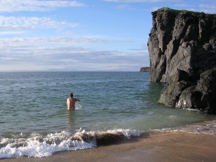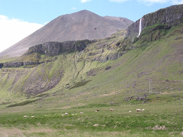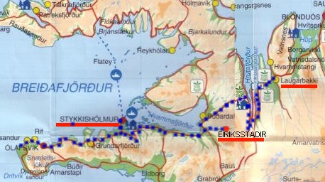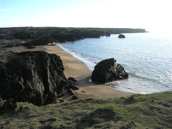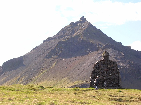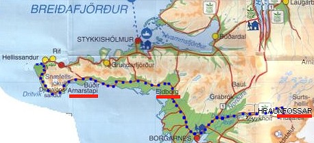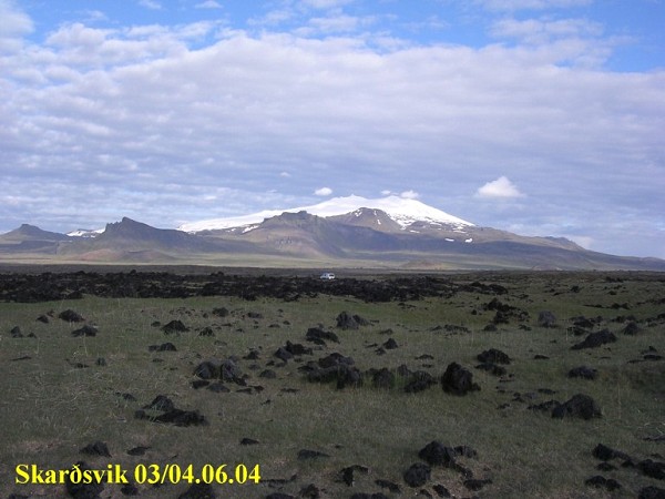 After leaving another 30 kilometers behind of lava-plains, as we rounded the corner to head for Snæfellsnes (the ridge in the background), we passed this old volcano named Eldfell (Firemountain). ![]() Another 70 kilometers along the mountainridge, only interupted by waterfalls, sheep and horses ![]() At Búðahraun we found this irregular mountain not far from the mainroad. ![]() Arnarstapi with its very special coastline, birdlife and caves was next. This place were so interesting that we dedicated a seperate page HERE. ![]() Now, if someone tried to make a copy of the mountain in the background, he failed, but may be he just made a monument for himself? No text, no explanation at the spot. Who knows? Wishing to get out the the westernmost point on Snæfellsnes, we turned left just before Hellissandur, but as the road was prette rough, we decided to stop by at a quite place. Next picture. ![]() We was not disturbed here. You see why? The Snæfellsnes mountain in the background, about 1,446 m asl. We had the sea just below the front of the picture. It was what we call in the Canary Islands: 'costa risco', which means that the coastline were quite risky to climb around. ![]() But here, as everywhere else in Iceland, flowers were coloring the landscape. What you can see on this picture is to the right, the common , the one to the left where white, and we still haven't found out why. However, it's name is Silene acaulis. Nice, isn't it? And it's latin. In english its just 'moss campion'. ![]() As usual, we walked along the coastline to see what we could find, and got pretty much surprised of what suddenly showed up. ![]() Since the sun were shining, and the Greenlandsea out there somewhere, what could be more right than having a bath after a long day in the car, before we went to bed at the end of Day 8? ![]() Believe it or not, the first one taken at 22:45, the second at 00:.05 local time. Day 9 ![]() Ready for a new day, and new surprises. That's what so wonderful about driving in Iceland. You never know what comes up behind the next corner.... 'Be aware - nest area - Birds on the road'. By the way, do you notice the hang-over up on the mountain-slope? What do you do when the weather is hot? You take a swin in a nearby river. What do you do in Iceland, when the weather is cold? You go to the nearest swimming-pool. And so we did. ![]() Sundlaug in Stykkisholmur, on the northern coastline of Snæfellsnes. Where the temperature in the water is 30° Celcius, and in the hot pools between 30° and 42°. You don't have to freeze in here! From Stykkisholmur and eastward, quite an ordinary landscape at first, but in between beautiful green fields and farms, mountains with and without snow on top, and long sandy beaches. ![]() Our next stop was the home of Leif Eiriksson, the guy who is supposed to have discovered America. That's a long story, and therefore Leif has his own page HERE. ![]() However, the wind blew harder in the afternoon, so we decided to stop at Laugarbakki, and stay there till the next morning, hoping the weather would be better for our planned trip around the peninsular of Vatnsnes, where we were promised to be able to see seals along the coast. Continue to day 10 Return to the menu |