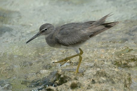 Grey-tailed Tattlers are strongly migratory and winter on muddy