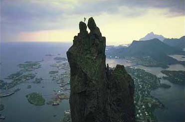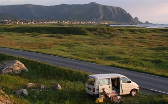 ![]() © Ravi Kappel If you ever dare to make it, you'll have a wonderful sight of Svolvær below. However, don't try to jump if you are not used to that kind of sport..... info about Svolværgeita found at <http://www.mai.liu.se/~maallofoten/geita.html> (Not valid as per Sept .2010) ![]() Hadsel bridge, Stokmarknes. 1.011 m long. Between Hadseløya and Langøya in Vesterålen. A few kilometers North of Sortland City, we came over to Andøya. This is a 50 km long narrow island, going just about North-South, with a hill/mountainrange in the middle. On both sides, there are quite a bit of flat land between the mountains and the sea, and on top the island, there are several white sandy beaches. ![]() Just north of Bleik on Andøya we find a place beside the road for the night. On the other side of the road, down the sanddunes, you have a very, very, very long white sand-beach, but someone doesn't like cars to drive down that way.....