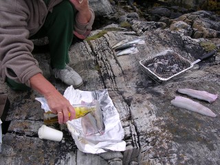 Think about this a warm and quiet summerday! Day 11 ![]() Queueing for the ferry from Andenes (in the background) to the island of Senja. ![]() Leaving Andenes and the dark clouds are splitting up. May be the sun will start shining? ![]() We told you before that the land between the mountains and the sea were quite flat, didn't we? If you don't believe us, ask anyone in Andenes City! ![]() Half an hour later, Senja is coming out of the mist, but it still looks quite rainy over there...... ![]() As we get closer, the weather changes rapidly, and the first part of Senja is in the sun again. A lucky fisherman is on his way out, and the seagulls are following. ![]() Out port of destination, Gryllefjord, a small village on the rough coast of Senja. Clouds are still hanging heavily over inner of the island. ![]() Did you notice the mountaintops above the village on the previous picture? ![]() Few minutes later we have rounded the fiord and are moving up towards the mountainpass which is only about 170 m asl, but it gives us a wonderful view of Gryllefjord and the peninsula outside. ![]() Everything ready for a barbeque. What has forced us to make that? Optimism. And an hour fishing in another maelstrom, although not as heavy as Saltstraumen. ![]() Not bad after an hour with no bites, except for another family whom only fished for the fun of it, so somehow we can still say 'we caught fish'..... Nevertheless it tasted excellent, and we enjoyed a late night-meal. ![]() and that brings us to the end of another fine day |
