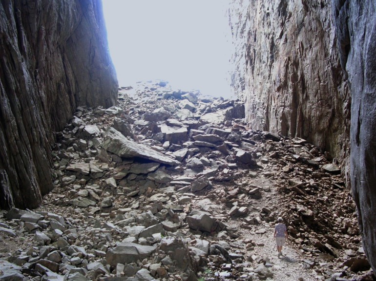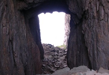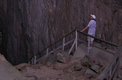 Den offisielle versjonen lyder slik: Fjellet Torghatten med sitt karakteristiske hull tvers gjennom. Dette hullet, som er 160 meter langt, 35 meter høyt, og 20 meter bredt, ble skapt under istiden. Is og vann gravde møysommelig i de løse bergartene, mens de hardere bergartene i fjellets topp stod imot, kan arkgeologene fortelle. Gangturen opp til hullet skjer på en godt opparbeidet sti, og tar rundt 20 minutter. Turen vår gikk omtrent slik: ![]() Den offisielle versjonen sa at det tok ca 20 minutter å klatre opp. De glemte å si at du måtte ta med deg et par flasker med vann på en varm dag..... ![]() Nesten fremme... Nå spørs det så om det var verd å klatre så langt eller ei. Joda, stien opp var godt merket, men du bør ha gode sko på beina - og hvis du hører til den eldre garde, ta deg god tid. 20 minutter opp er ikke et krav!. ![]() Nå som du har kommet så langt, sett deg ned litt før du går videre. Snu deg rundt og nyt den praktfulle utsikten over der du kom fra. Det alene skulle vel være verd anstrengelsene med å klatre opp hit. Er du ikke enig? (ikke glem å høyreklikke på alle bildene for å få full størrelse på dataskjermen, 800x600) ![]() Etter å ha kommet så langt, så la oss ta en titt innenfor - og GJENNOM fjellet. Fantastisk! De kan se tvers igjennom Men så kommer neste spørsmål: Kan vi også gå gjennom hullet og komme ut på den andre siden? ![]() Vel, noen har bygd trapper her, så la oss prøve dem. De må jo føre til et sted, og vi er ivrige etter å oppleve flere eventyr. ![]() Før vi forlater overflaten på denne jorden, la oss ta et siste tilbakeblikk..... (Glem ikke å klikke for større bilde!) Og så, la oss nå se hva det er i den andre enden nå.... ![]() Noe dukker opp..... (ikke glem å høyre-klikke!) men det er fremdeles noen skritt å vandre gjennom dette store hullet i fjellet.... ![]() Selvfølgelig har du blitt advart - Du går turen på eget ansvar. Det betyr at myndighetene tror at hvis du følger den oppmerkede stien, som imidlertid slett ikke er så godt oppmerket inne i fjellet, er det stor sansynlighet for at du kommer ut i sikkert på den andre siden. Men det er noen mennesker som tror at man kan kaste store steiner ned i hullet - bare for moro skyld, og for å lytte til bulderet de etterlater seg. Men be dem om ikke å gjøre det mens du selv er der nede!! ![]() La oss så ta enda et siste blikk bakover, før vi når slutten på hullet. Vi har tross alt tilbakelagt en bra distanse inne i fjellet. Det var spennende - og det var moro. Men det skulle komme mere.....