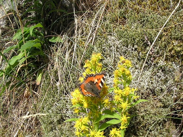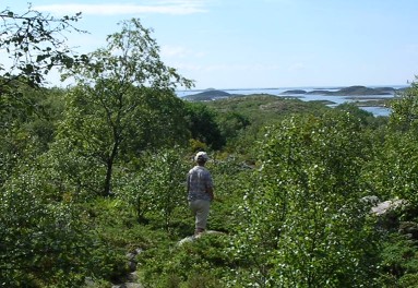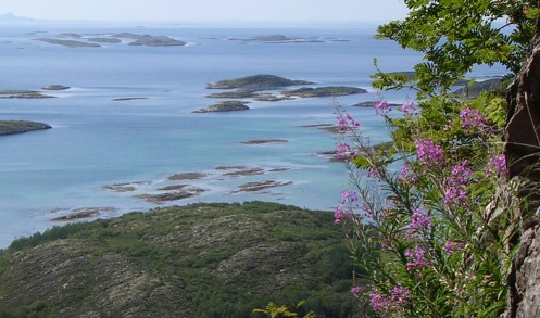 Utenfor Torghatten, utenfor kysten, er det i tusenvis av små øyer. Legg også merke til gården som ligger nedenfor hullet i Torghatten. Dette synet alene var turen verd - så til nå er vi blitt rikelig belønnet for anstrengelsene. ![]() Endelig helt ute på den andre siden hvor vi fikk øye på en pen liten plass oppe i skråningen, - et passende sted for litt lunch og en kopp kaffe. ![]() Derfra hadde vi god utsikt til utgangen fra hullet i Torghatten. Nå dukket det opp et nytt spørsmål. Skulle vi nå gå samme vei tilbake, gjennom hullet igjen? Eller ville det være mulig å gå videre nedover skråningen til gården nedenfor, og så - ville det være mulig å følge kystlinjen rundt Torghatten og komme tilbake til utgangspunktet, der bilen vår var parkert? Det var ingen lett avgjørelse å ta.... ![]() ....når våre tanker hele tiden ble dratt mot alt det vakre rundt oss. Vi var bare nødt til å sitte og nyte utsikten enda en liten stund: ![]() Den rasten varte i over en halv time. Vi fikk bare ikke nok av alt sammen. Men klokken gikk, og vi måtte bare bestemme oss for hvilken vei vi skulle returnere. ![]() Så gjorde vi et forsøk. Vi ville prøve å gå ned, og så rundt fjellet. Og - heldigvis var det faktisk en sti som førte nedover skråningen. ![]() Derfra hadde vi god utsikt til inngangen til hullet i Torghatten fra sjøsiden. Vanskelig her å forstå hvordan vi kom igjennom, men bildene vi tok minner oss om hvordan det var. Det var faktisk sant det vi hadde opplevd . ![]() Og så var vi endelig nede igjen. Herfra gikk vi mot venstre og fulgte strandlinjen - og så snart vi kom ned til sjøen, lot vi havet kjøle oss ned. I lagunen på den andre siden, rundt fjellet et stykke, nær campingplassen, fant vi massevis av disse skjellene: ![]() og tilbake på stranden igjen, flere av blomstene vi hadde gledet oss over på denne turen, i og rundt Trollhatten. ![]() |