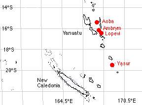 Malekula Island, almost reaching Malo Island. High levels of activity