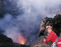 et lag eventyrere ned i infernoet til en aktiv Stillehavs-vulkan.