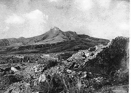 Vulkanen, som var ca 1500 m. høy, bar navnet Mount