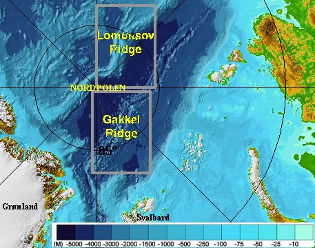 isen i nordishavet. Vulkanene ligger på Nansen-Gakkel-ryggen, som er omtrent 1800 km lang, og har den mest langsomme utvidelsen (0,5cm - 1,5cm pr.år), og er også den dypeste >5000 m), av verdens mange spredningssoner.