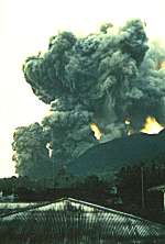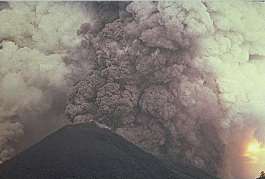 Til venstre: Tatt under utbruddet 9.mai 1988, og viser to kraftig