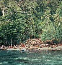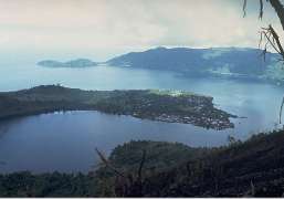 ligger den største av byene i Banda-gruppen. Den kan skimtes