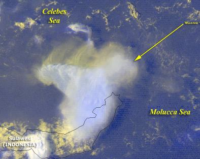 med 6.500m høye skysøyler. Askenedfall i Bima
