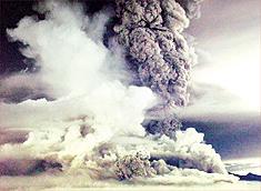 kom det et nytt askeregn og en kraftig lukt av råtne egg (svovelgass)