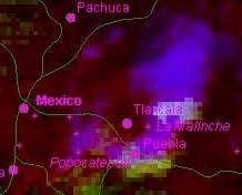 om askenedfall fra Huejotzingo, San Pedro Cholula og Puebla.