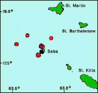 for 12 jordkjelv nær Saba, 4-16 Juni 1992.
