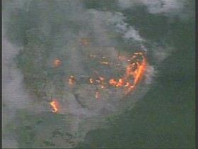 Seismic activity remained at a low level Wednesday, maintaining the slight increase that occurred last night. This mornings visual observations and thermal imaging of the crater were focused on the intensely deforming and uplifting area on the south side of the 1980-86 lava dome and the new lobe of lava in the western part of that area. The area of both the uplift and the new lobe of lava have increased slightly since yesterday. Temperatures of almost 700 degrees C were measured in parts of the new lobe, from which ash-rich jets rose tens of meters. Abundant steam continued to rise from the area of lava extrusion to the crater rim, from which it was dispersed southwestward by strong winds. From USGS That message verifies what we believed was the glow of lava on the pictures shown below from yesterday. Newspapers in USA have also reported same, and AP press has made a picture available, showing the lave-extrusion - you can see the picture here, at least for a while. Wednesday, October 13th, 2004 noon (norwegian time) ![]() something strange going on..... could it be glowing lava? Compare the two pictures to the right with an old day-time picture(left). Since midnight St.Helens time, or 09.00 CET (norway) there has been spots like these. morning (norwegian time)