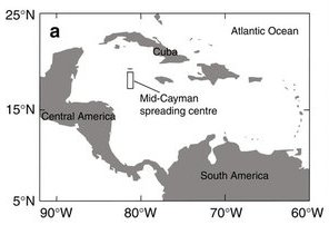 The Mid-Cayman spreading centre is a submanene ridge in the middle