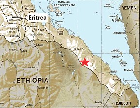 Dubbi volcano, located in the northeast part of the Afar triangle, erupted explosively in May 1861, showering maritime traffic in the Red Sea with pumice and plunging coastal settlements into darkness. Earthquakes associated with the opening phase of the eruption were felt in Yemen, and explosions were heard as far as Massawa, 330 km distant. The eruption caused damage and 105 fatalities as two villages were destroyed. Large herds of cattle also killed. More than 100 local inhabitants were reported killed, possibly as a result of pyroclastic flow emplacement. By October 1861, activity switched to basaltic fire-fountaining focused along a 4-km-long summit fissure that fed several lava flows that traveled as far as 22 km. The volume of lava flows alone, 3.5 km³, makes this the largest reported historical eruption in Africa. An anomalously cold Northern Hemisphere summer in 1862, recorded in tree-ring records, could be the result of Dubbi's sulfate aerosol veil.