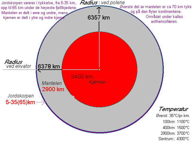 ytterste 100 til 200 km, nåes et punkt (ved omkring 1500 grader